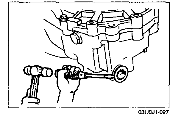 9. Tap the new oil seal into the transaxle case by using the SST.