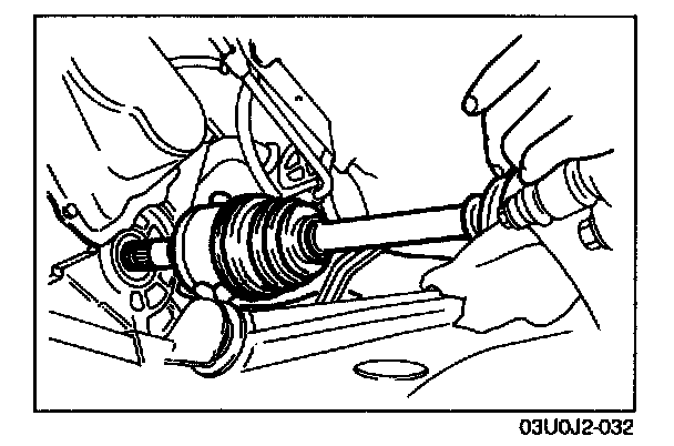 CAUTION: Do not subject the tripod joint to shock when removing the driveshaft.
