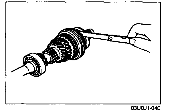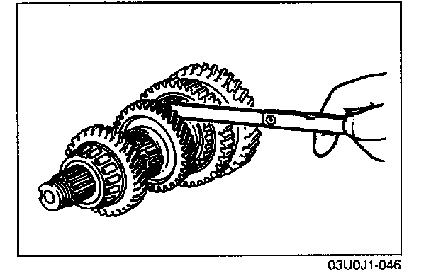 2. If the clearance exceeds the the maximum, check the contact surfaces of 5th gear and the clutch hub. Replace worn or damaged parts.