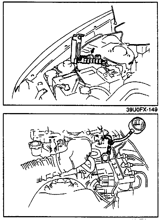 5. Turn ignition ON and check line pressure. It should be 37 - 46 psi (255 - 314 kPa).