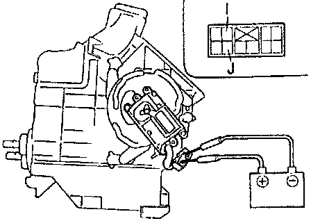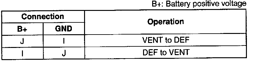 2. Connect battery positive voltage to terminals I and J of the airflow mode actuator and check the actuator operation.