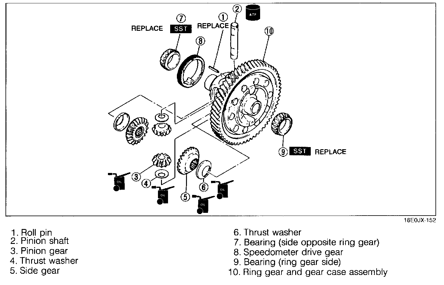 1. Before disassembly, inspect the backlash of the side gears and pinion gears, referring to Preinspection.