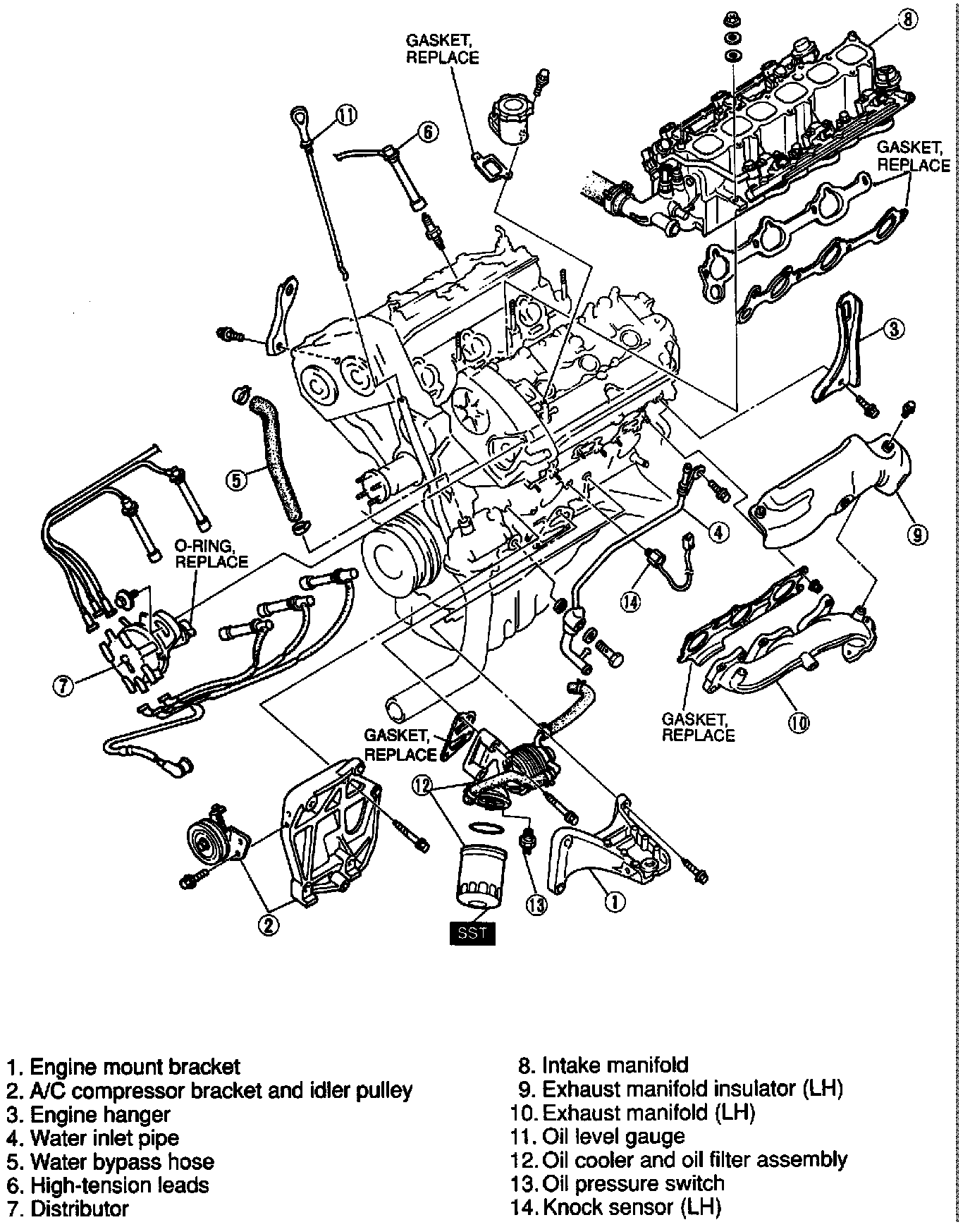 8. Remove lefthand side exhaust manifold insulator, then exhaust manifold from cylinder block.