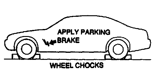 2. Apply the parking brake and securely position wheel chocks to prevent the vehicle from rolling.