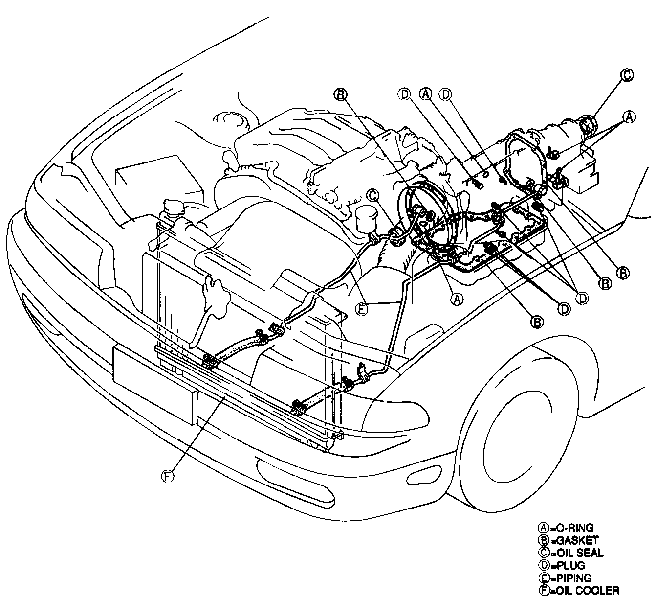 Check for ATF leakage at the points shown below and repair or replace as necessary.