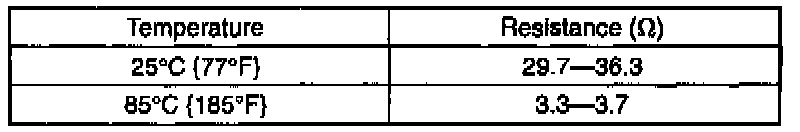 NOTE: Two separate intake air temperature sensors (IAT)s are utilized by the engine control system. One sensor is incorporated in the volume airflow sensor assembly and the other is mounted on the intake manifold dynamic chamber.Intake Air Temperature Sensor Resistance Specifications: