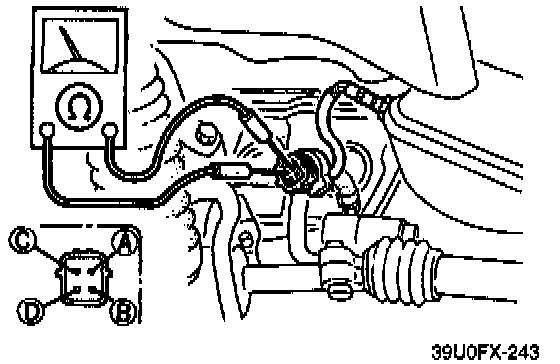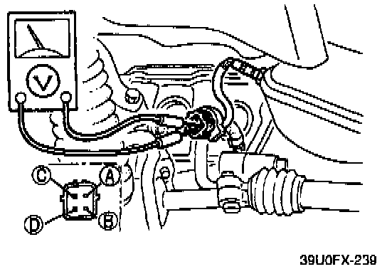 3. Connect a voltmeter between the heated oxygen sensor terminal A and B.