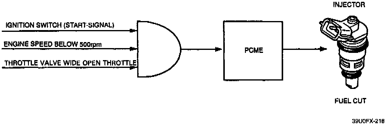 Fuel injection is cut if the throttle valve is held wide open while cranking the engine. This allows the spark plugs to dry and purges excess fuel from the cylinders.