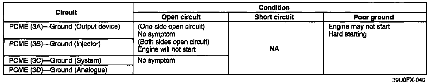 - If either output device ground or an injector ground has an open circuit, no particular symptom will be produced. If the related output device and injector grounds both have open circuits, the engine will not start.