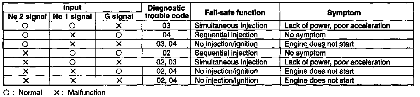 - If the G signal circuit has an open or short, Diagnostic Trouble Code No. 03 is output.