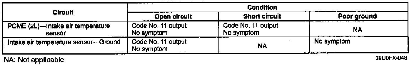 - If the intake air temperature sensor system fails, no particular symptom will be noticed.