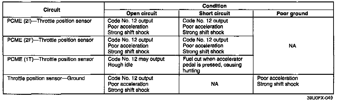 - If the throttle position sensor is not properly adjusted or the throttle position sensor system fails, poor acceleration or shift shock will result.