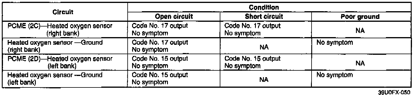 - If sensor output voltage is not generated (because of an open or short circuit), Diagnostic Trouble Code No. 15 (left bank sensor) and/or 23 (right bank sensor) is output.
