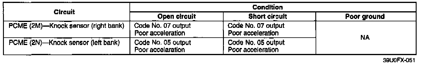 - If the knock sensor or circuit has an open or short, Diagnostic Trouble Code No. O5 (left bank) and/or 07 (right bank) is output.