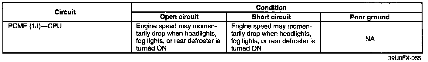 - An open or short circuit in the CPU circuit can cause a momentary drop in engine speed when the headlights, fog lights, or rear defroster is turned ON.