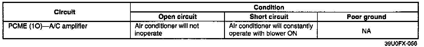 - A short circuit is detected as A/C OFF, and the air conditioning will be in the OFF mode in D range (NORMAL).