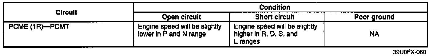 - If the circuit is shorted, the engine speed will be slightly high in R, D, S, and L ranges.