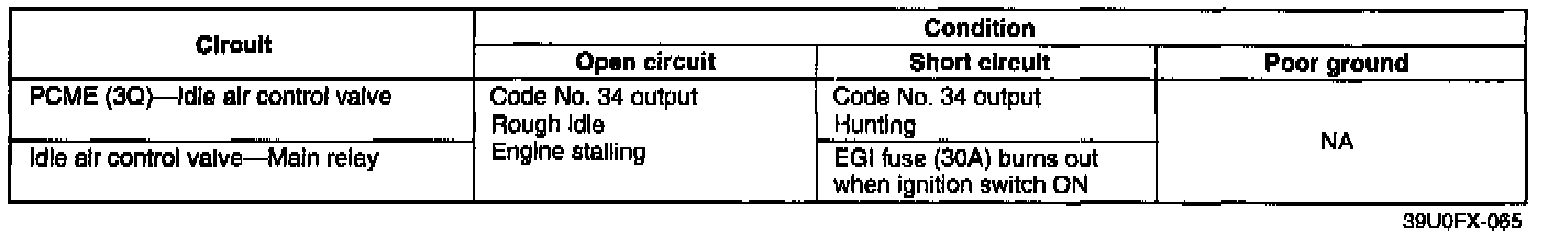 - If the circuit is open, rough idle or engine stalling may appear because of inoperative Idle Speed Control (ISC) control.