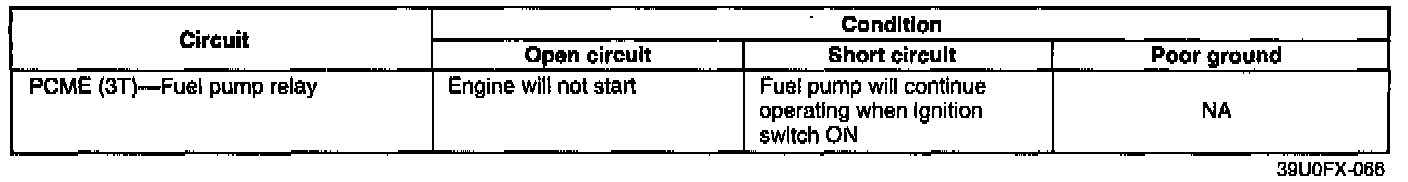 - If the circuit is shorted, the fuel pump will remain operating with ignition switch ON.