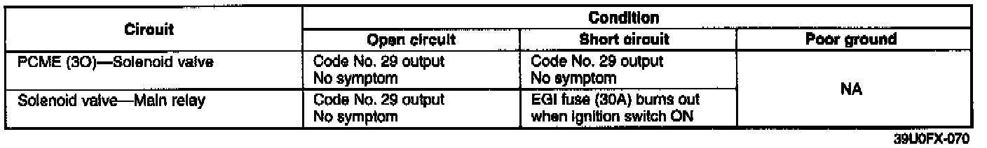 - If the circuit is shorted, the solenoid valve will be fully opened, causing engine stalling and hard starting.