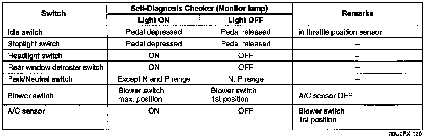 The TEN terminal of the data link connector must be grounded and the ignition switch turned to ON (engine off). If any switch remains activated, the monitor light will be illuminated. If switches are deactivated the monitor light should be OFF.