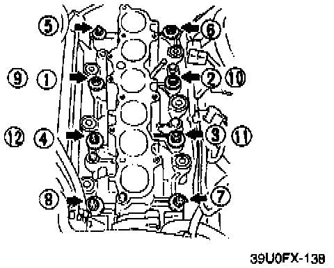 2. Tighten the nuts to specification in two steps in the sequence shown in the figure.