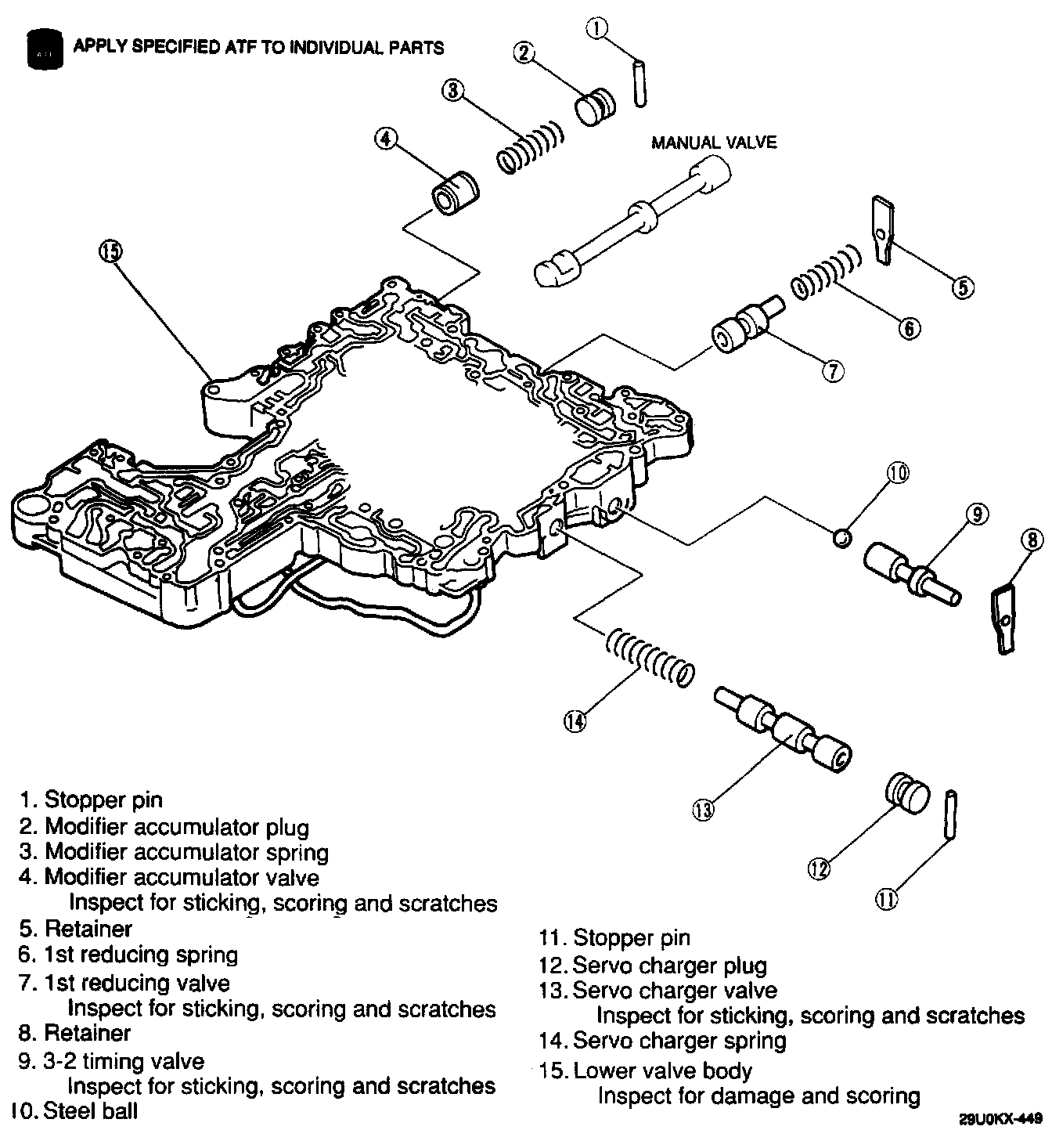 - Denting or scratching these precisely machined components will reduce the ability of the transaxle to shift properly. When handling these components or the valve body that contains them, be careful not drop or hit them.