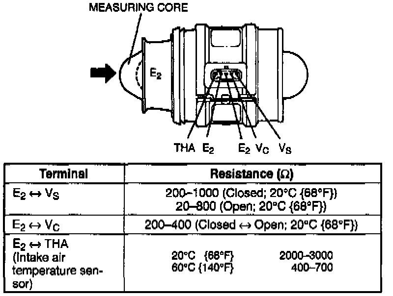 - Check the volume airflow sensor body for cracks or damage.- Verify that the measuring core opens smoothly.