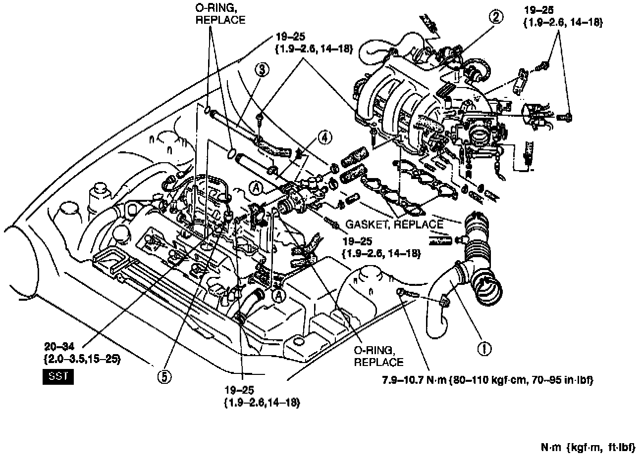 1. Install in reverse order of removal, referring to numbered sequence in image. Use new gaskets and O-rings as indicated.