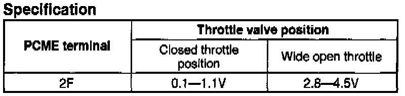 3. Rotate throttle by hand and verify that voltage is 0.1 - 1.1 Volts with throttle closed and 2.8 - 4.5 Volts at wide open throttle.