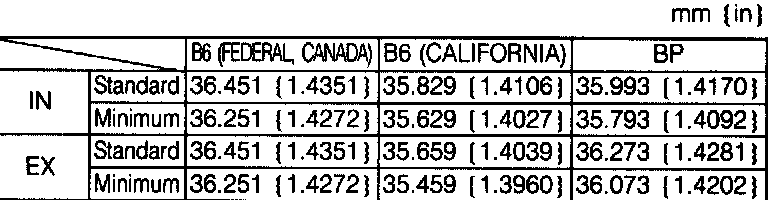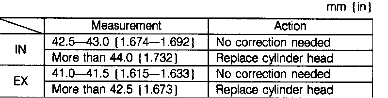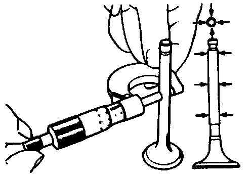 2. Measure the valve head margin thickness of each valve. Replace the valve if necessary.