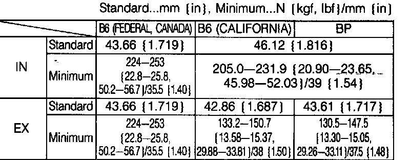 2. Measure the free length and out-of-square. Replace the valve spring if necessary.