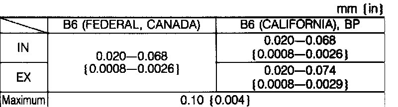 (4) If the clearance exceeds the maximum, replace the camshaft or cylinder head.