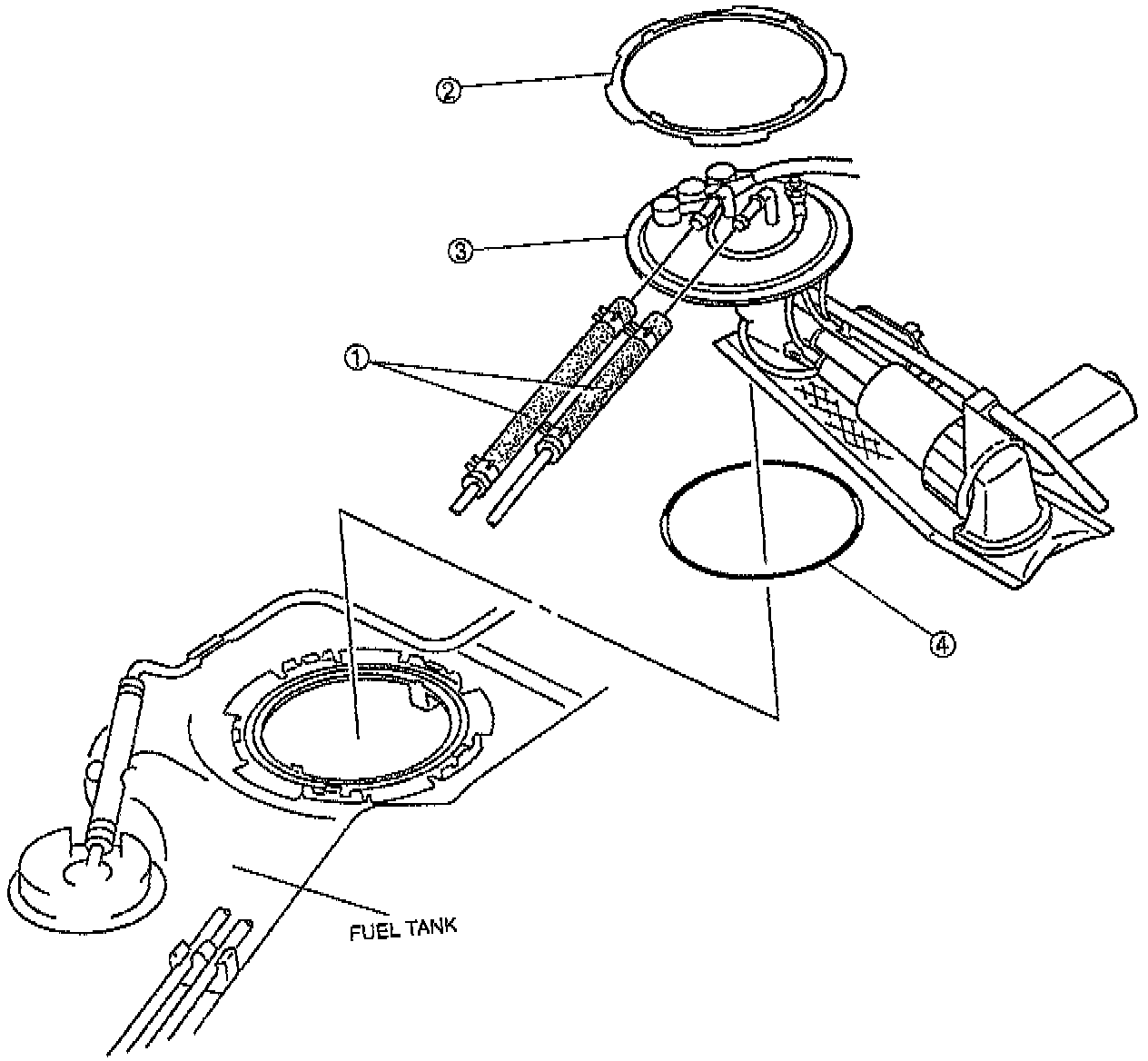 Rotate the fuel pump ring counterclockwise, and remove it.