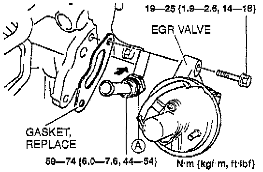 Note: If nut A is difficult to remove (stuck), first remove the following and then remove the nut together with the EGR pipe from under the vehicle.