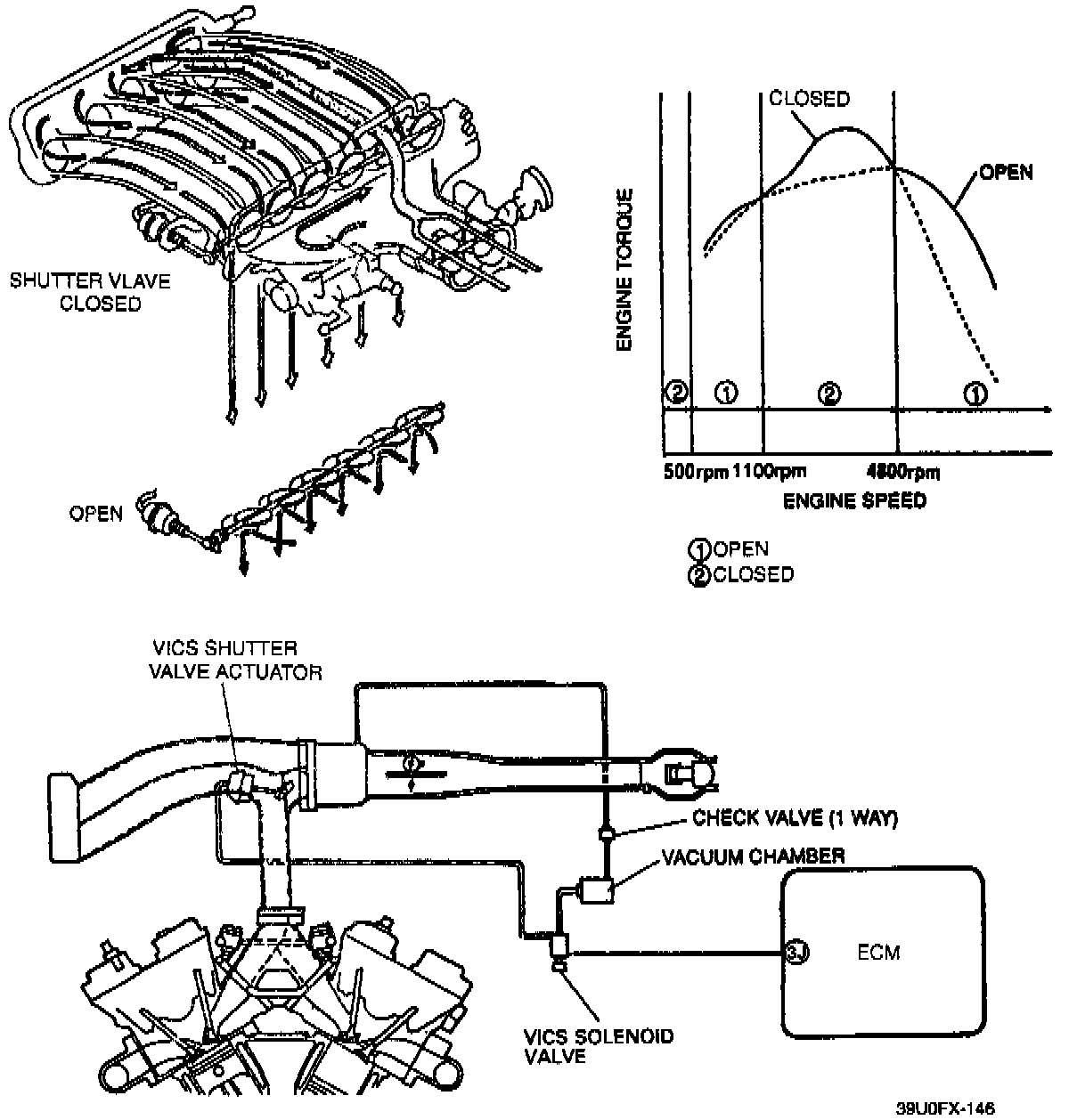 The Engine Control Module (ECM) closes the shutter valve by stopping the electric current to the variable inertia charging system (VICS) solenoid valve. The VICS solenoid valve switches the shutter valve actuator to an air release position when the following conditions are met: