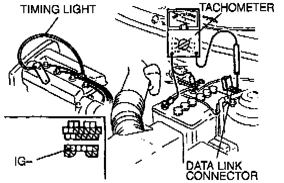 NOTE: The (yellow) timing mark on the crankshaft pulley should be close to the 10° (±1°) BTDC mark on the timing belt cover.