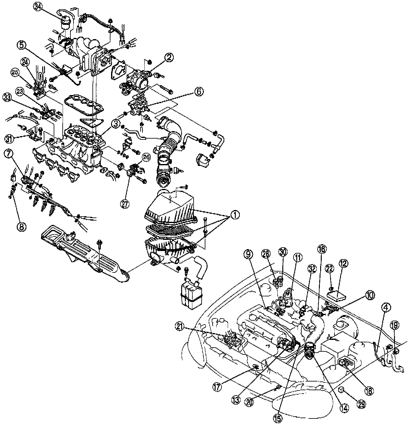 13. Camshaft position sensor (in distributor)