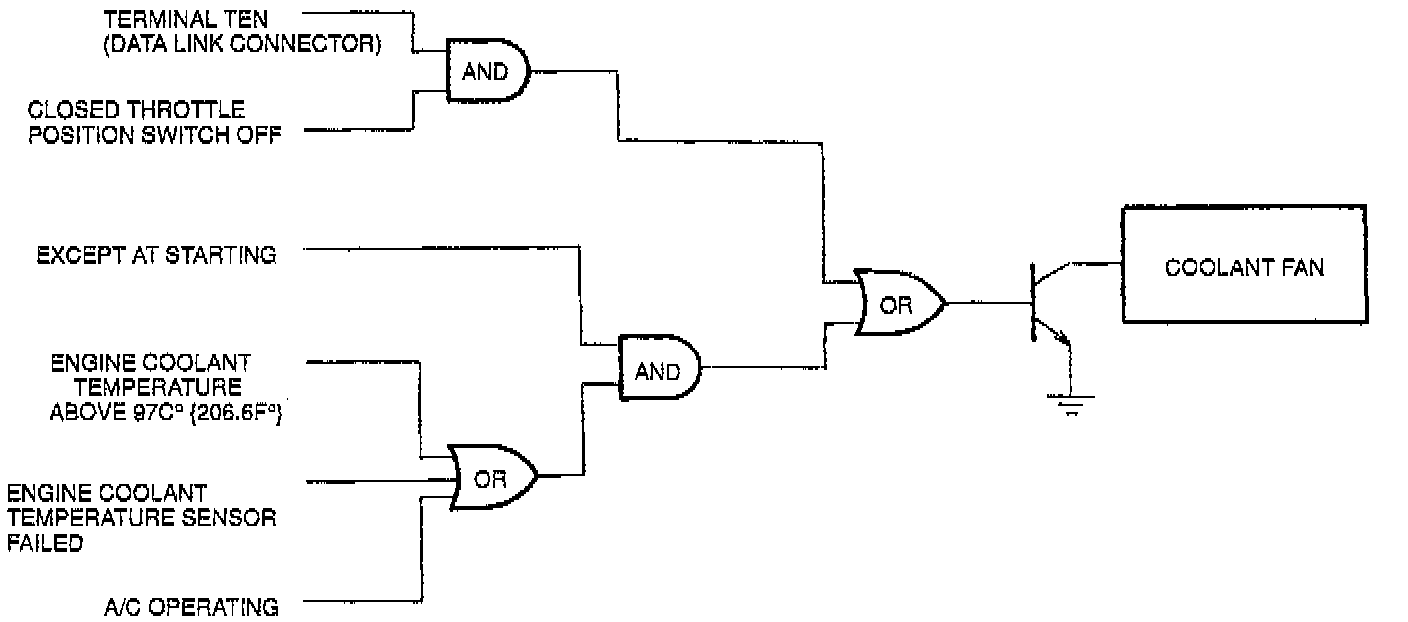 The Engine Control Module (ECM) controls the coolant fan and the condenser fan to provide more efficient fan control. This improves the performance reliability and stability during idling of an engine.