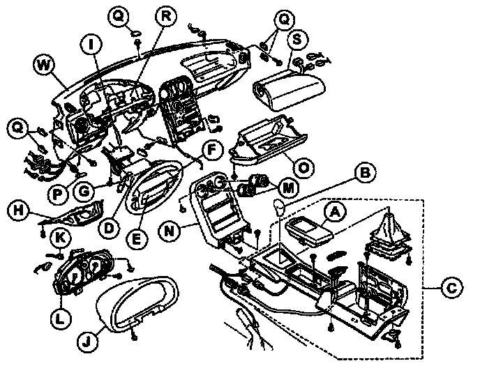 H. Remove center lower panel (section 5 - DASHBOARD AND CONSOLE [Components Removal/Installation]).