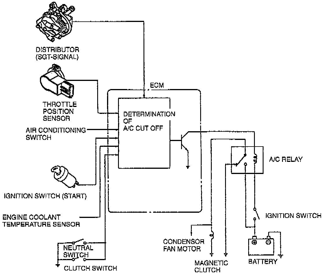 An A/C cutoff system is used to improve idle smoothness just after starting the engine and to improve acceleration performance.