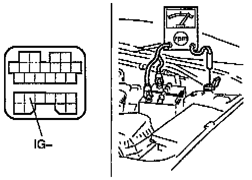 6. Increase the engine speed over 4,000 rpm and measure the voltage at ECM terminals 4E and 4I by using a volt meter.