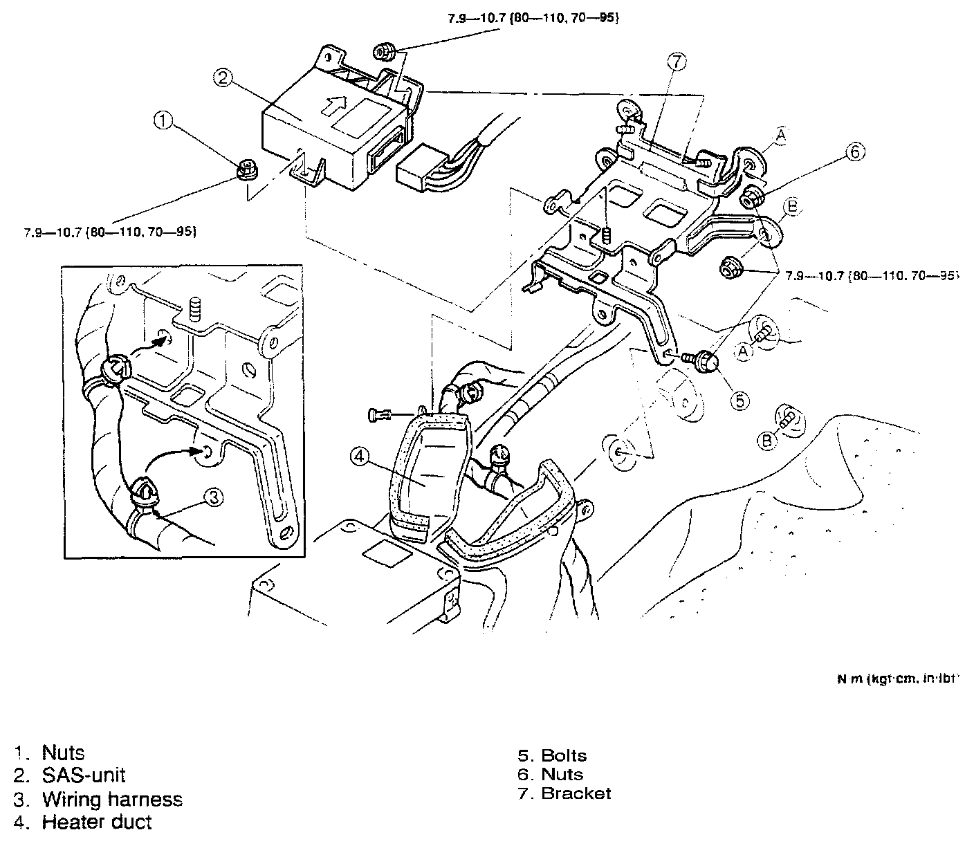 2. Position the SAS-unit and bracket with the arrow on the SAS-unit facing toward the front of vehicle. Install them and tighten the bolts and nuts to the specified torque.