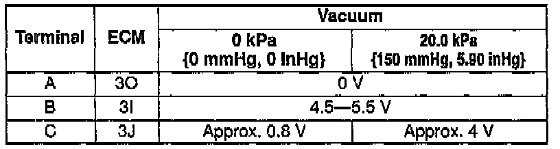 5. Measure the voltage at the ECM terminals as shown in the table.
