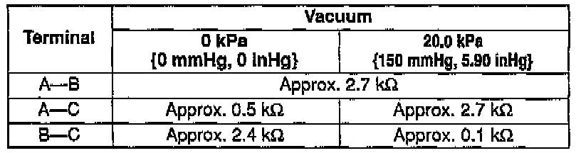3. Use an ohmmeter to measure the resistance between the terminals as shown in the table.