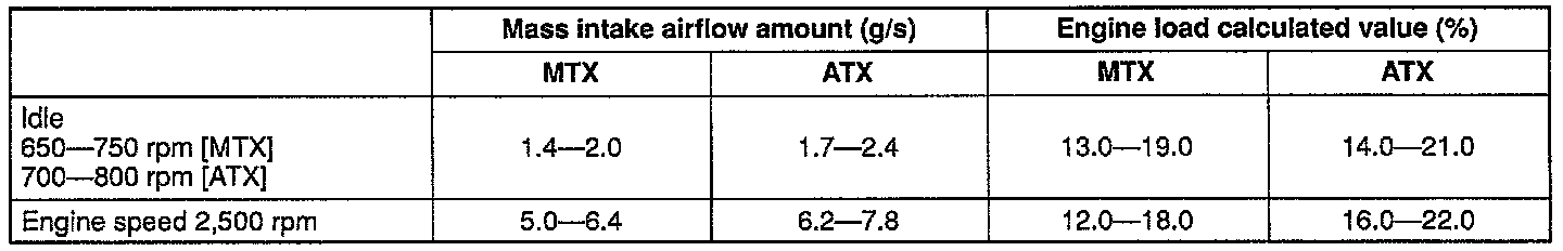 Note: The scan tool shows the mass airflow rate and load value.