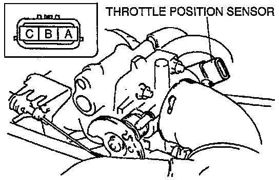 2. Measure the resistance between throttle position sensor connector terminals A and C by using an ohmmeter.
