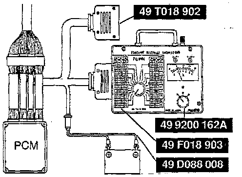 ^ Terminals A and B of the SST (Monitor, Engine Signal) are for connection of an external instrument. By connecting an external instrument such as a circuit tester or an oscilloscope, various inspections in addition to the measurement of the PCM terminal voltages are made possible.