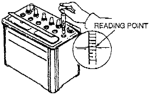1. Verify that the electrolyte level is between the "Upper" and "Lower" level marks.