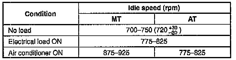 Idle speed (Neutral or P range): 700-750 (720 +30-20) rpm